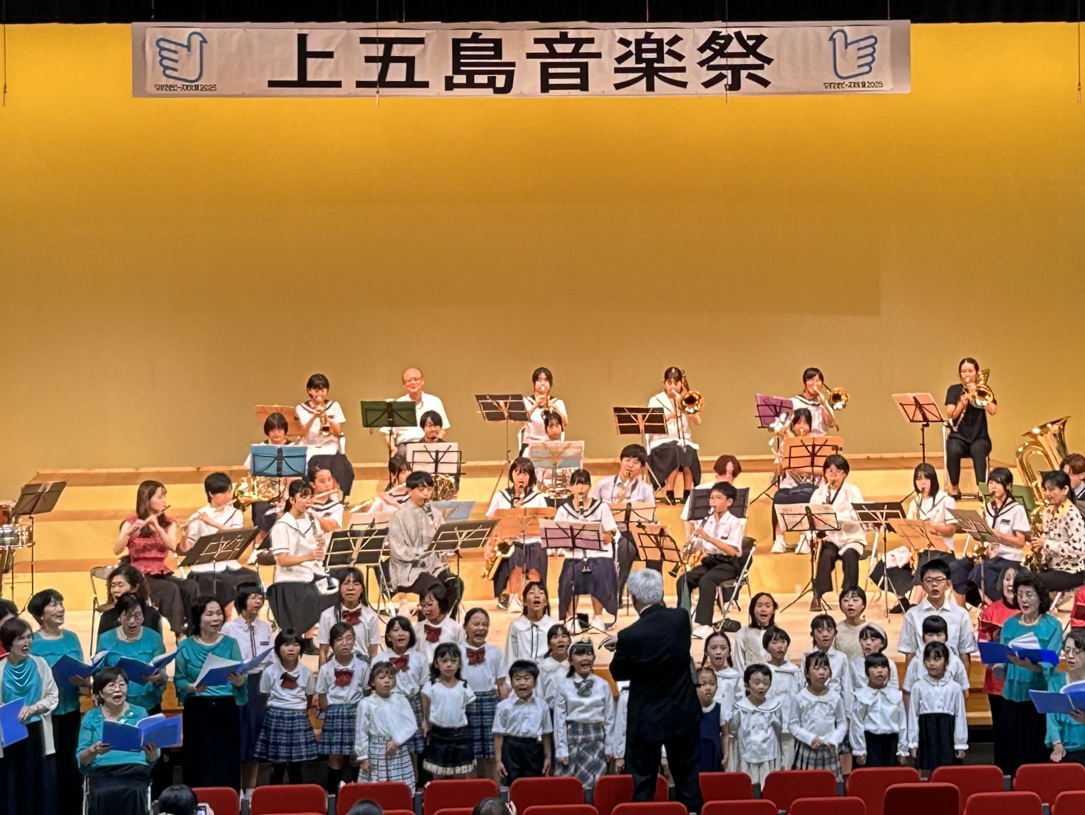 フィナーレでは、かみごとう音楽祭のために作詞・作曲されたオリジナル曲「幸せの島」を合唱と吹奏楽でお届けします。